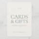 A refined and elegant wedding Cards & Gifts sign designed in a soft sage green palette with a minimalist, modern aesthetic.
