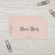 This minimalist blush pink business card features ample negative clean space for adding handwritten notes or information and a chic script calligraphy.