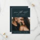 En romantisk, enkel fotospara datum-kort med vacker skript kalligrafi, horisontellt foto och minimal text på framsidan. Baksidan har ett vertikalt foto med bröllopswebbplats. Klicka på redigeringsknappen för att anpassa denna design.
