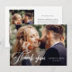 Detta Eleganta Skript Enkla Moderna Bröllopsfoto Bröllop Tacksamhetskort har stilren vit kalligrafi tack skript och full bleed foto. Ett andra personligt foto kan läggas till på baksidan med ett anpassat meddelande.Baksidan innehåller ett tackmeddelande som du kan anpassa eller ta bort om du hellre vill skriva din anteckning för hand. Klicka på knappen Redigera för att anpassa denna design.