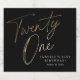 Modern minimalistisk 21-årsdag glänsande vinsetikett med stilren falsk guld folie nummer handskriven skrift Twenty one och dina festsdetaljer i klassisk serif-teckensnitt på svart bakgrundsfärg, enkel och elegant, fantastisk överraskning vuxen milstolpe födelsedag för män och kvinnor.