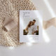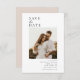 Datumkortet innehåller ett skript för elegant och serif typsnitt med en matchande fotomall i mitten. Biet är perfekt för ett chic, ett minimalt elegant bröllop-tema. Anpassa detta för att spara datumkortet med parets foto-, namn- och bröllop-datum.
