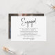 Inbjudan dina gäster hjälper dig att fira din förlovning med den minimalistiska svartvita designen som är inställd i modern skripttypografi med ditt foto på baksidan. Kontakta mig om du behöver matchande artiklar eller en anpassningsbar.