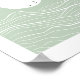 This minimalist landscape illustration features a soft sun rising above ocean wav drawn with clean white line art on a calming sage green background. The gentle curves and open space create a sense of peace, balance, and quiet reflection.
