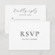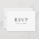 OSA kort för muslimskt muslimskt Bröllop och Tillfälle. Enkelt vitt färg-kort med ett traditionellt svart skrivteckensnitt i klass. Elegantens typografi. Modern. Minimal. Formellt. Ord "vänliga svar" är skrivet i snyggt i mitten. Svarskortet kan vara personlig för dig med hjälp av Design Verktyg. Den är skriven med nöje, tyvärr avböjd och helt närvarande med ett bindestreck på den lämnat. Du kan redigera namnen för paret på den här utskriftsmallen. Tomt vitt kuvert.