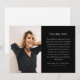 Uttryck din tacksamhet till dem som har gett sitt orubbliga stöd under din sorgestund med vårt tackkort för begravningsfoto. Ladda enkelt upp ett älskat foto och anpassa ditt meddelande för att skapa en verkligt hjärtlig token av uppskattning. Anpassa bakgrundsfärgen för att spegla din personliga stil. Detta tidlösa och eleganta kort är den perfekta hyllningen till din älskade familjemedlem.