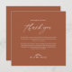 Det här minimala terracotta Modern Bröllop-tackkortet är en perfekt blandning av elegans och modern estetik. Den särskiljande minimalistiska utformningen har en vacker terracotta-bakgrund som motsvarar de varma skiftningsnyheterna och den häpnadsväckande kalligrafskripttypografin som ger en förfinad beröring. Idealisk för ett fallbröllop är det här lyxiga tackkortet en chic, ett minimum av stil som kompletterar årstidens färg palett och ger en tidlös appell till designen och skapar en atmosfär av ett högprispapper. Anpassa bakgrunden färg, textteckensnitt, storlekt och placerat på önskad plats med hjälp av verktyg. Om du vill ha matchande objekt går du till samlingen Minimal Modern Bröllop för svart Elegant.