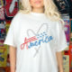 Denna t-shirt är perfekt för att fira patriotiska helgdagar som den 4 juli. Utformningen av ord "Amerika" omgiven av ett hjärta med tunt linjer och det amerikanska Flagga införlivat i texten. Det är ett snyggt och bekvämt sätt att visa kärlek för Förenade Stater. Den här t-tröjan är perfekt för vilken avslappnad som helst tillfälle. Bära till en BBQ, parad eller någon annan patriotisk händelse. Det finns i en rad storlekar som passar alla kroppstyper. Få redo att visa din patriotism med den här snyggten och bekväm t-shirt.