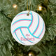Den här söta volleyball-prydnaden för flickor har ett par enkla, minimalistiska volleyball-bilder från stil (som bara visar vokerkulans sömmar i turkos och rosa) som är något förskjutna från varandra på vit bakgrund - anpassa med sitt namn och minnesår - av katz_d_zynes
