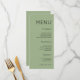 Contemporary stil med det här anpassadets typografiska utformning med menydetaljer som är justerade till högerna mot bakgrund av sidans grönt på båda sidor. Er namn och bröllop-dag är på tillbaks till högerna i grund. Anpassa texten enkelt. Du kan också ändra text och färg i bakgrunden så att de stämmer överens med bröllop-temat om du vill och vill redigera dem ytterligare via alternativet Anpassa ytterligare. Om du behöver hjälp, meddela mig.