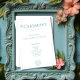 Slimmad, sofistikerad och smidigt elegant - detta moderna bröllopsprogram för ceremonier är en perfekt för paret som inte har någon tidsinställd utformning i kärlek med en contemporary-vrid. Med mjuk turkos-aqua-text på en ren vit bakgrund ramas layouten av ett tunt öppet gräns som lägger till bara högernas detaljer. Parets första namn går i centrum, teckning i öga, innan man ger gästerna information om evenemanget i ett minimalistiskt modernt typsnitt. En enkel konsthistoria lägger till en aning kustcharm. Skapat av Farmhouse Press.
