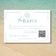 Slimmad, sofistikerad och smidigt elegant - detta moderna svarskort för bröllop med en QR-kod är perfekt för paret som inte har kärlek-tidsschema med en contemporary-vrid. Med mjuk turkos-aqua-text på en ren vit bakgrund ramas layouten av ett tunt öppet gräns som lägger till bara högernas detaljer. Händelseinformationen visas i ett modernt, minimalistiskt typsnitt. Ett årstidsbunt lägger till en kustkontakt. Skapat av Farmhouse Press.
