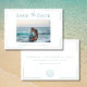 Slimmad, sofistikerad och smidigt elegant - detta moderna bröllop spara datum-kort är perfekt för paret som inte har någon tidsmässig utformning i kärlek med en contemporary-vrid. Med mjuk turkos-aqua-text på en ren vit bakgrund ramas layouten av ett tunt öppet gräns som lägger till bara högernas detaljer. Parets foto och namn är i centrum, med händelsedetaljer på baksidan i ett minimalistiskt modernt typsnitt. På baksidan lägger ett säsongsbetonat linjeformat till en kustkontakt. Skapat av Farmhouse Press.