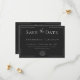 Slimmad, sofistikerad och smidigt elegant - detta moderna bröllop spara datum-kort är perfekt för paret som inte har någon tidsmässig utformning i kärlek med en contemporary-vrid. Med skarp vit text på en ren svart bakgrund med kol, ramas layouten av ett tunt öppet gräns som lägger till bara högernas detaljer. Parets första namn går i centrum, teckning i öga, innan man ger gästerna information om evenemanget i ett minimalistiskt modernt typsnitt. Ett årstidsbunt tillför en liten bit kustcharm. Skapat av Farmhouse Press.