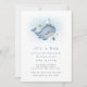 Fira minimalistisk baby shower med detta söta under havet baby shower tema, med akvarell illustration blå val, fisk, segelbåt