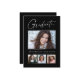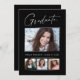 Rena, minimala, moderna och elegant "4-fotokort" studenten, med inslag av modern text med ett unikt calligraphy bläck-skript. Fotona från student accentueras med en delikat och minimalistisk övertoningsgräns. Kortets baksida ger personlig textutrymmen för information om studenten. Svartvit eller anpassa bakgrunden så att den passar din skolas primära färg eller valfritt färg. Perfekt för högstadiet, högskolan och universiteten grad student.