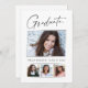 Rena, minimala, moderna och elegant "4-fotokort" studenten, med inslag av modern text med ett unikt calligraphy bläck-skript. Fotona från student accentueras med en delikat och minimalistisk övertoningsgräns. Kortets baksida ger personlig textutrymmen för information om studenten eller kan raderas om du vill skicka ett meddelande till skrivan. Svartvit eller anpassa bakgrunden så att den passar din skolas primära färg eller valfritt färg. Perfekt för högstadiet, högskolan och universiteten grad student.