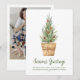 Season's Greetings-kort har en vacker vattenfärg Julgran med skript och serif typsnitt i en mörk grönt skugga. Den här minimala, enkla och elegant designen är redot för dig att anpassa med ditt eget foto och eget meddelande. Här ändrar du färg eller behålla. Bläddra i Season's Greetings Family Photo Card Collection om du vill ha mer design.