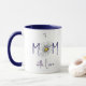 Minimal White and Navy Watercolor Daisy Mom Mother's Day Coffee Mug. Celebrate Mother's Day with this minimal floral MOM design, featuring a delicate hand-drawn watercolor daisy as the heart of the word. The simple line lettering paired with a soft botanical and the 'with love message" illustration creates a timeless look that feels warm, thoughtful, and easy to wear. Personalize the mug with her name.