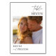 Lägg till en personlig beröring till din bröllopsmottagning med det här moderna contemporaryn, minimala bordsnumret av anpassningsbar. Lägg till ett eget foto (foto till förlovningen, bilder från reseminnet, foton från högskolan, barndomen eller par foton) till varje bord-kort och namn med ett nummer eller resmål för en speciell avslutat beröring. Infoga namn i serif-teckensnitt med calligraphy-accent. DUBBLA SIDED Coordinated with MODERN Calligraphy Script PHOTO BRÖLLOP SUITE