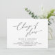 Detta är bröllopsinbjudan ombokad (uppskjuten / uppskjutande) kort (Kärlek är tålamod), i modern minimalistisk enkel ren design tema, Svart teckensnitt.