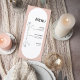 Elevate your reception tables with this minimalist arch wedding menu card featuring timeless black typography and a delicate botanical illustration. The soft neutral background and elongated arch shape create a refined, modern silhouette that feels both elegant and contemporary.