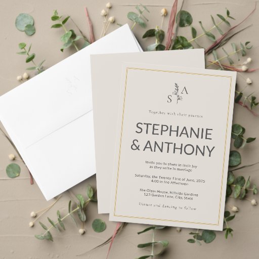 Modern Minimalist Monogram Beige and Sage WeddingDesignad av Karina Baha