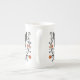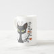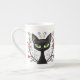 Black Cat Filigree / Quilling style design bone china coffee mug featuring a Black Cat with large green eyes surrounded by flourishes and flowers.