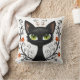 Minimalist Black Cat Green Eyes Filigree Design Kudde
