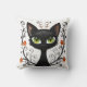 Black Cat Filigree / Quilling style design cushion featuring a Black Cat with large green eyes surrounded by flourishes and flowers.