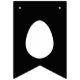 Modern minimalist Easter design with a black background featuring Destei's bunny silhouettes and Easter egg shapes in white, along with a white "Happy Easter" greeting.