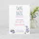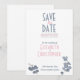 Minimalist Blush Blå Rosa Blommig Bröllop Spara Datumet