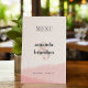 Minimalist Blush & Bloom Bold Script Wedding Menu Cards.