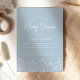 En enkel blommigt gräns av vita konsthantblommor på en dammig blå bakgrund dekorerar grund kant på denna inbjudan till babydusch. Orden "Baby Shower" visas i ett vitt handskriftsskript för elegant. Anpassa resten av texten till namn i mamma till att vara, datum, plats och OSA. Idealisk för en vår, sommar- eller fall-babydusch.