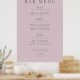 A simple and elegant wedding sign featuring the word ‘Bar Menu’ in clean modern typography with a subtle botanical line drawing behind. Designed with a minimalist layout and generous white space, it adds a refined contemporary touch to your drink station or reception area.