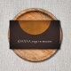 Elegant anpassade yoga-instruktörsmall med struktur orange halvcirkel mönster och mörk brun bakgrund. Perfekt för salonger, yogainstruktörer och studior. Minimalistisk design.