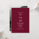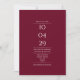 En modern minimalistisk design med ditt speciella datum och bröllopsdetaljer i klassisk, chic typografi på en burgunderbakgrund. Lägg till ditt favoritfoto på baksidan. Designad av Thisisnotme