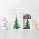 Elegant modern watercolor Christmas design featuring a single green pine tree with subtle winter accents like snowflakes, gold stars, and pinecones. Perfect for wrapping paper, stickers, and gift tags. Clean and minimalist design ideal for holiday gifting and seasonal decor.