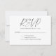 This minimalist RSVP card in black and white features elegant handwritten lettering paired with clean, easy-to-read response lines. Guests can clearly indicate their attendance, decline if needed, and note the number of guests attending, making it both practical and polished. Designed to coordinate seamlessly with modern invitation suites, it adds a refined finishing touch while keeping responses simple and organized. A timeless choice for hosts who value clarity, balance, and understated design.