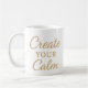 Bring serenity into your daily routine with this minimalist cozy quote mug featuring the calming message “Create Your Calm.”