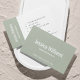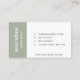 Project a polished and nature-inspired brand image with this clean, two-sided business card design featuring a sophisticated sage green color block. The front is dedicated to the essential name and title in crisp white text against the solid green background. The back offers a contrasting split layout with a vertical sage sidebar, clearly organizing all contact details like email and social handles on the white side in a highly readable, modern, and eco-chic format.