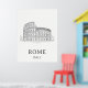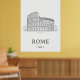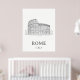 Stylized travel poster of Rome illustrated in minimalist lines. It features iconic silhouettes of Roman Colosseum, evoking a sense of timeless history.