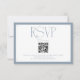 Announce your upcoming celebration with this classic blue wedding RSVP card. The clean white space is framed by a tasteful blue border, creating a timeless aesthetic. A dedicated section for your wedding website and QR code simplifies the RSVP process, while the prompt 'By August Eighth' ensures timely responses. This card is designed to impress your guests and streamline your wedding coordination with its understated elegance.