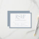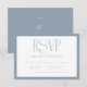 This elegant RSVP card features a delicate botanical leaf illustration with a modern, minimalist design. The dusty blue background provides a sophisticated and serene feel, perfect for a wedding or special event. The monogram and names are elegantly displayed, creating a personalized touch for your guests. This card is designed to seamlessly complement your wedding invitations, ensuring a cohesive and memorable stationery suite for your big day.