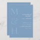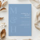 Minimalist Dusty Blue Monogram Simple Wedding Inbjudningar
