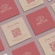 Minimalist square beauty business card featuring a dusty rose and cream color palette with a modern QR code layout. Perfect for salon owners, hairstylists, lash techs, makeup artists, estheticians, and spa professionals. Elegant, clean, and fully customizable—ideal for sharing contact details, booking links, websites, or social media with a polished, luxury touch.