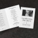 Rengöringen och minimalisten vek begravnings- program i svartvitt, med elegantt typsnitt. På täcka, ett foto av din älskade tillsammans med deras namn och år bo. Insida kan du skriva dödsrunan och programmera. På baksidaen kan du tillfoga tack till personer.
