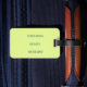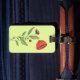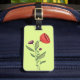 Personlig minimalistblommor bagagetagg med en linjekonst av enkla blommor av abstrakt söt i grönt, lila och korallrött färg.