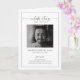Funeral memorial program featuring on the front a photo of the deceased, their name, dates, the memorial venue, date of the event, and elegant dark gray frame. On the inside is an obituary, and order of service; and on the back another photo, a thank you note and the second venue for after the funeral. For further customization, please click the "Edit using Design Tool" link and use our design tool to modify this template. If you need help or matching items, please contact me.