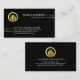 The gold lines houses your prestigious name and job title at the top with the business name and contact details at the bottom. A gold global logo you can use is over at the top left corner.